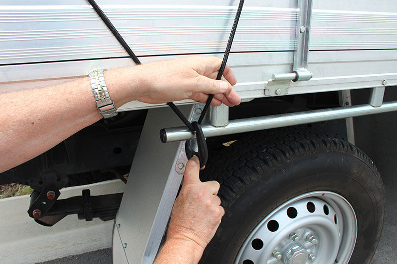 The simple yet effective shock cord fitting points allow for easy access to areas of the tray to load or unload tools and equipment without having to remove the entire cover.
