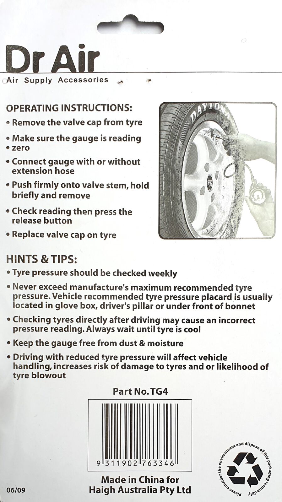 DR AIR METAL TYRE PRESSURE GAUGE