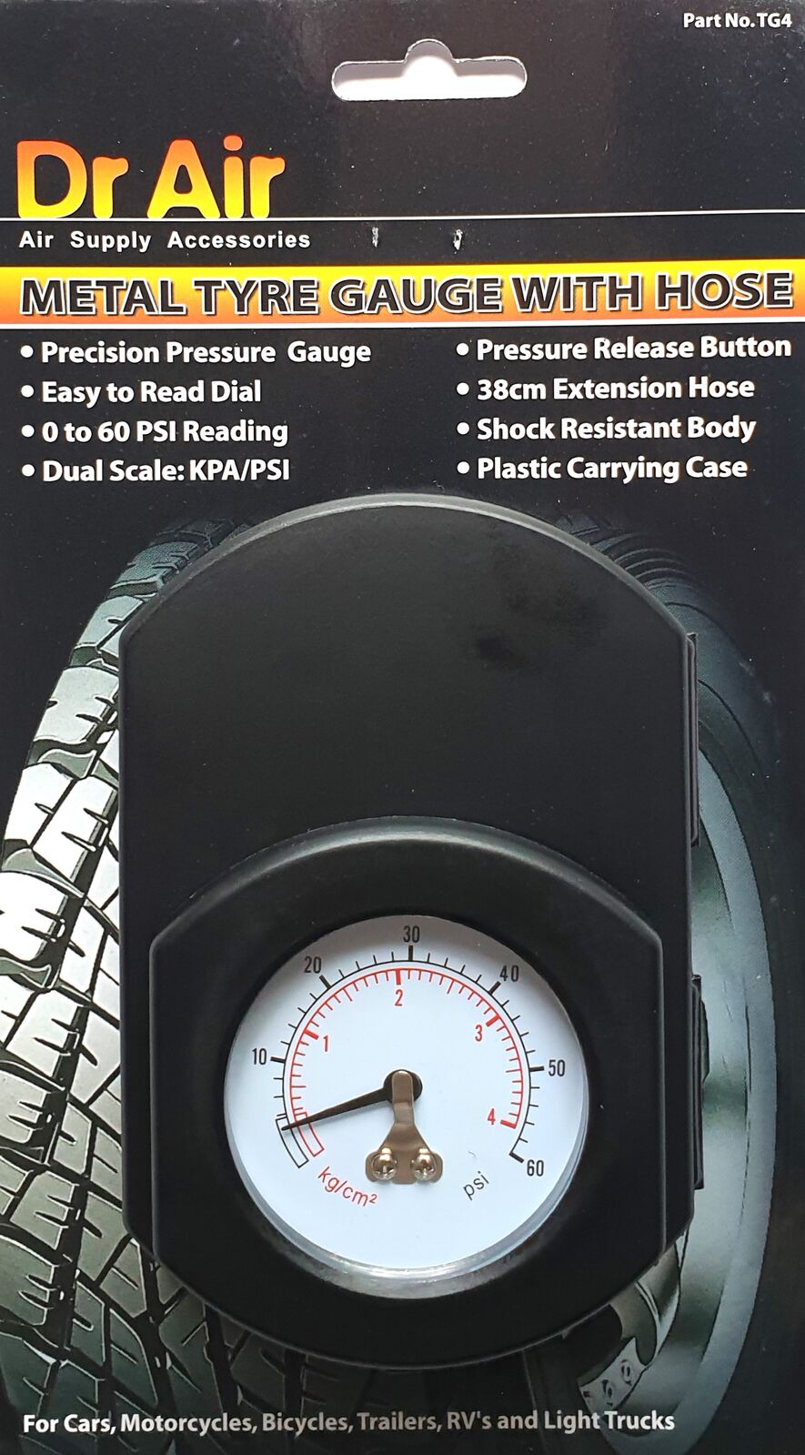 Dr Air Metal Tyre Pressure Gauge 0-60psi Car Auto